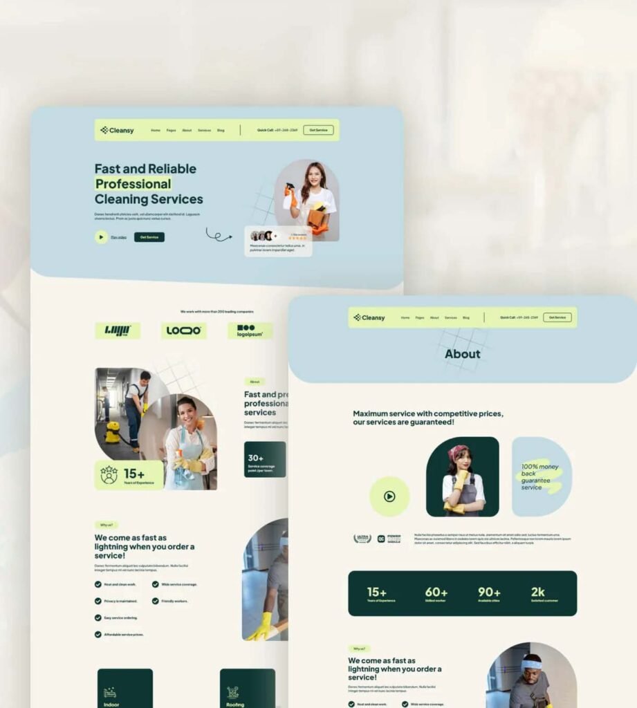 Professional website designed for cleaning businesses to display services, capture leads, and boost online bookings.
